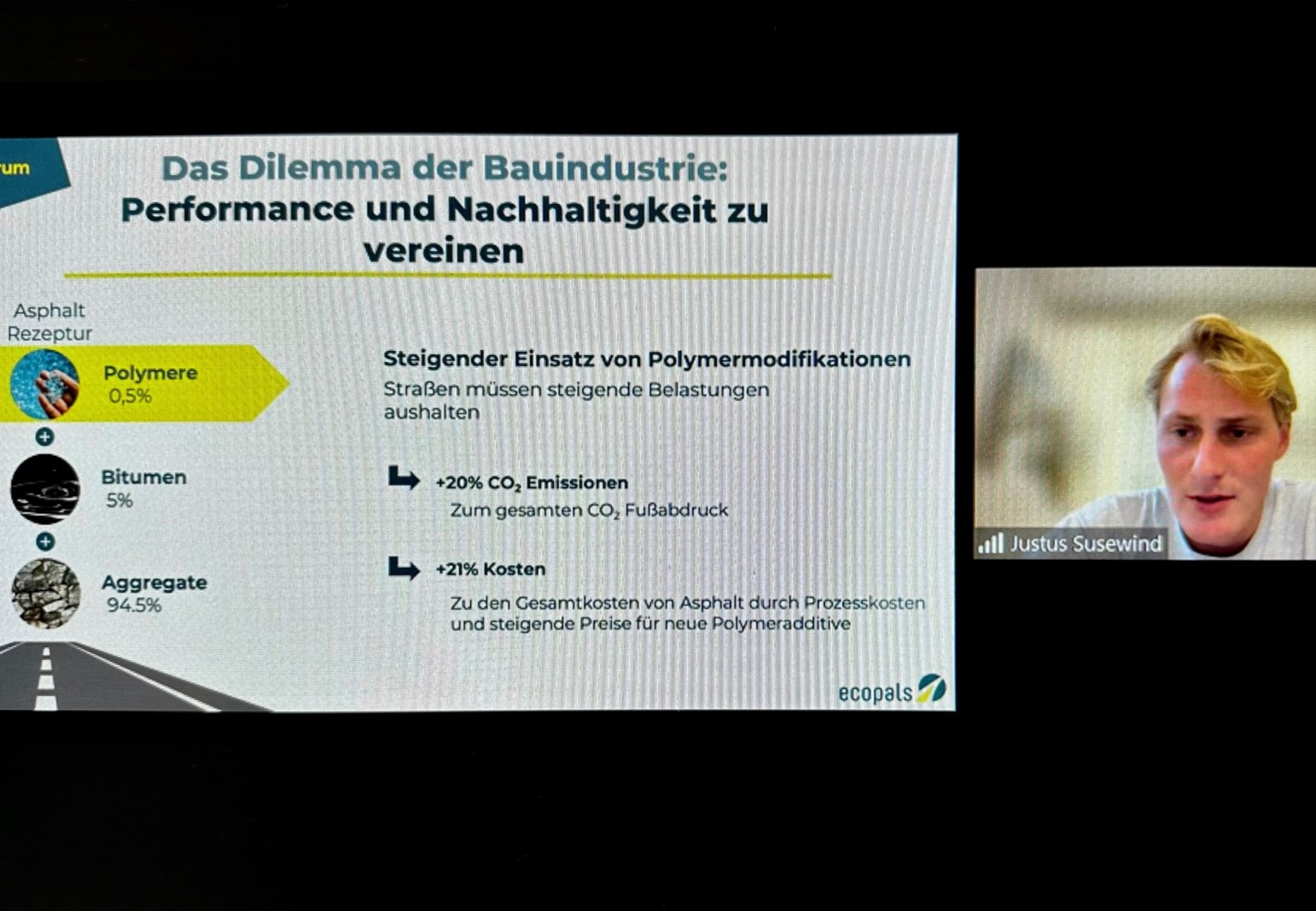 Im Abschlussvortrag von Justus Susewind des Start-Ups EcoPals GmbH ist die Frage, welchen innovativen Einsatz schwer zu recycelnde Kunststoffabfälle in den Straßen von morgen haben, mit den ECOFLAKES beantwortet worden.
